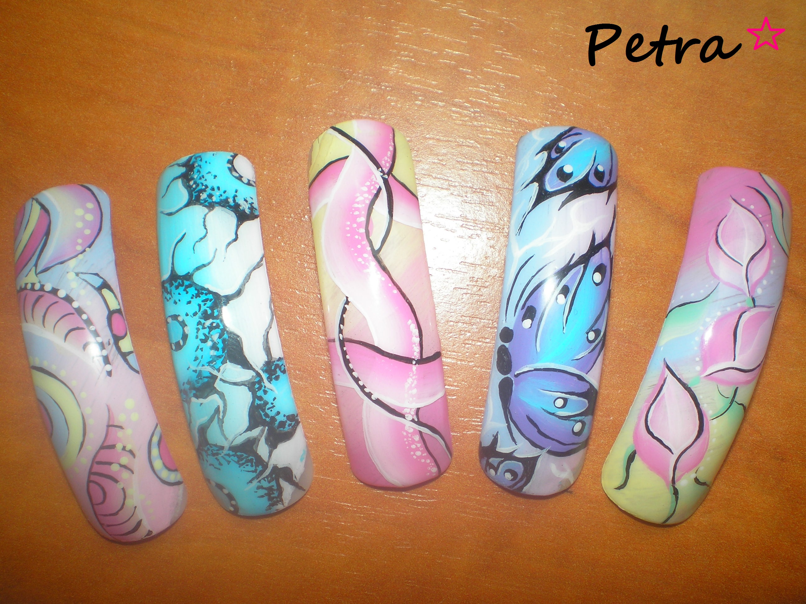 Velmi populární metoda malby nejen na nehty. Nazývaná také jako "čínská malba". One Stroke = jedním tahem. Štětec se namočí do jedné barvy, pak do druhé a jedním tahem se malují stínované kytičky, lístečky i jiné tvary.